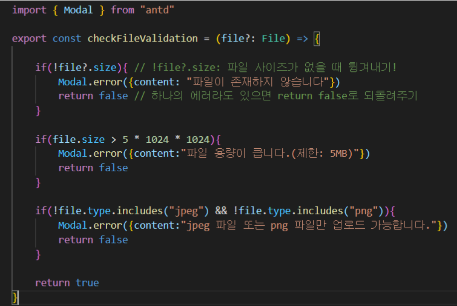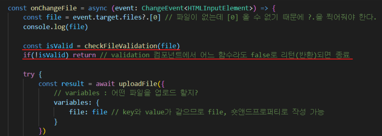 2. validation 컴포넌트 함수들이 false로 리턴되면 실행 종료, true로 반환되면 try~catch 실행