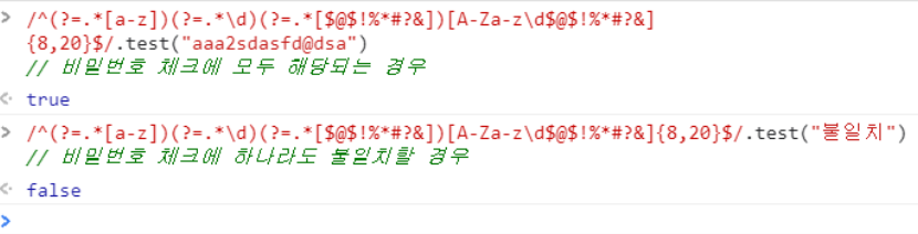3. 조건에 해당되는경우(or 비밀번호 체크 사항에 하나라도 불일치되는 경우)에는 false 값을 그 외에는 true 값을 return 해준다.